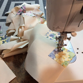 I didn't quilt any quilts, because Rita has us well stocked in finished quilts, but I did cut up a huge pile of scraps into usable sizes (10" squares, 5" squares, 4.5"x 2.5" rectangles, and 2.5"x 1.5" rectangles).  I felt so virtuous when I got that done!